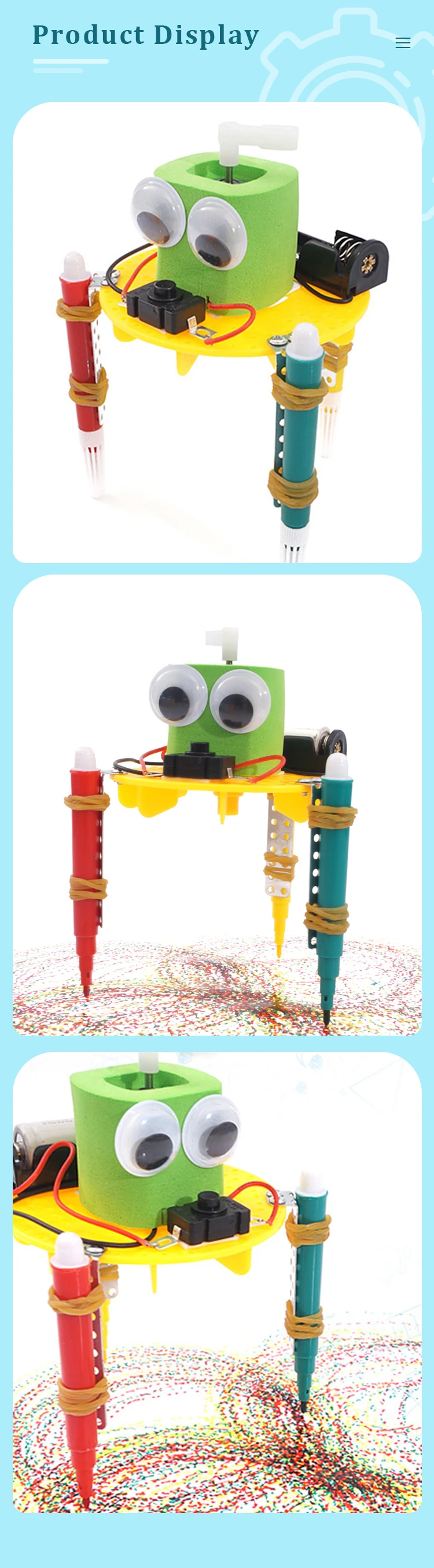 | Desc. | 2024 Factory Price Graffiti Doodling Robot Model Science Educational Toys Kids Scribbler Diy Drawing Robot |