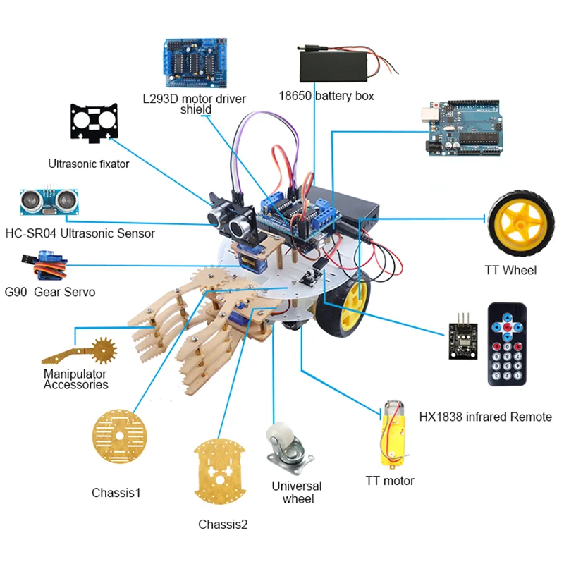 4WD Mechanical Robot Arm+Smart robot car kit for R3 STEM Radio Control Toy-UMI-2492