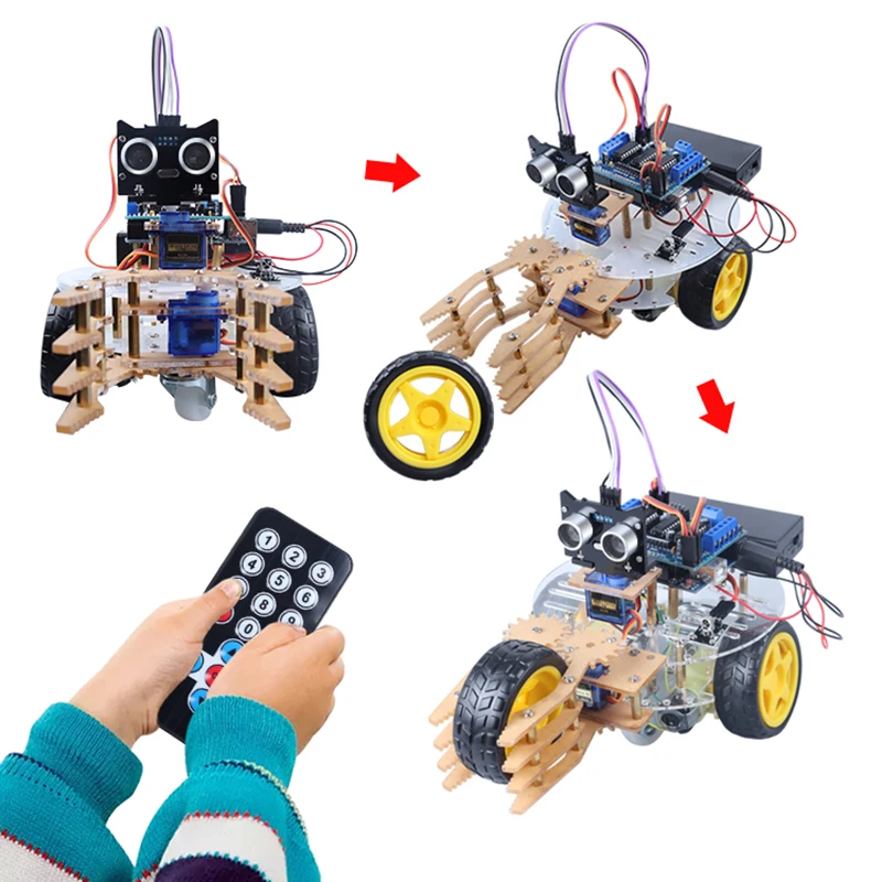 4WD Mechanical Robot Arm+Smart robot car kit for R3 STEM Radio Control Toys