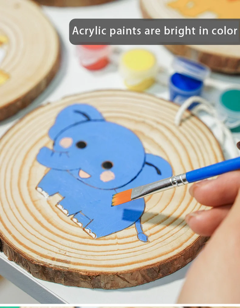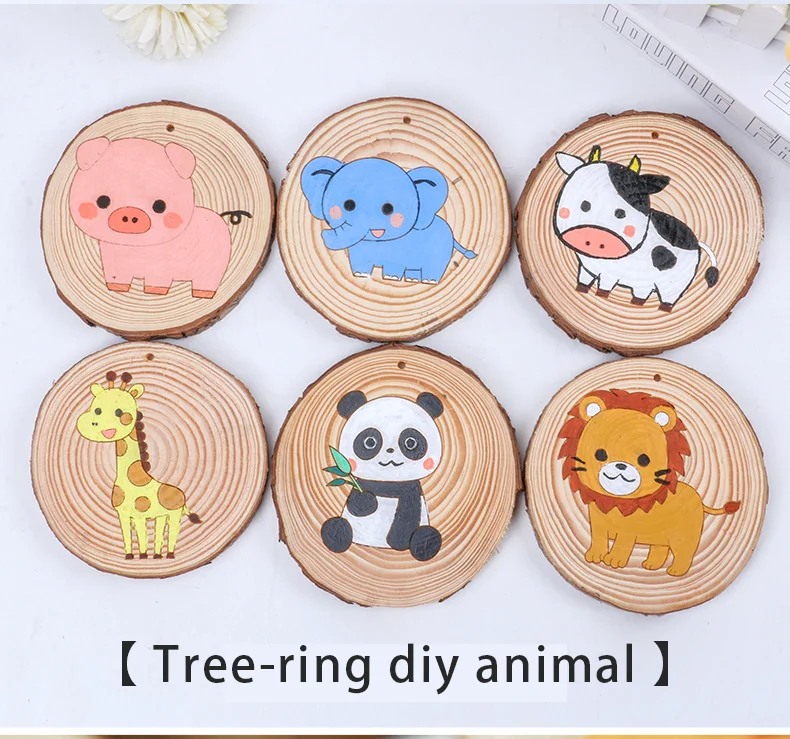 Children Pine Disc Drawing Set Wood Chip Painting Set Cartoon Pattern Kids-UMI-2248