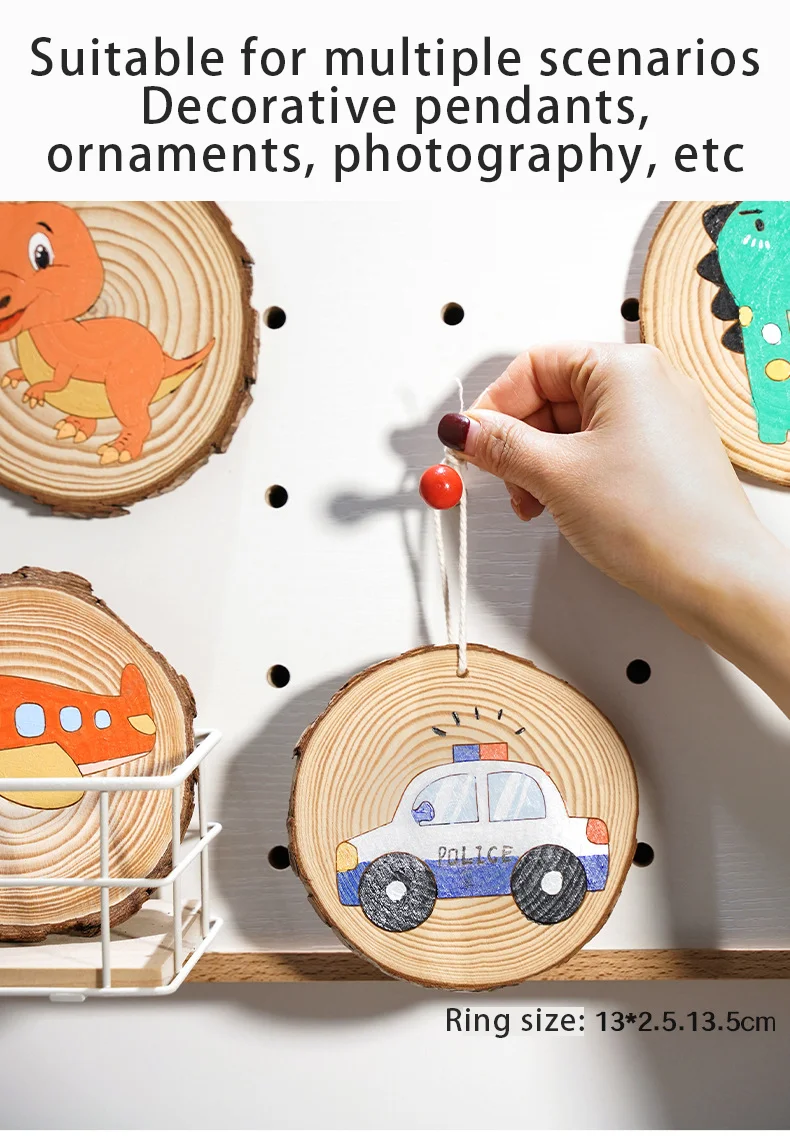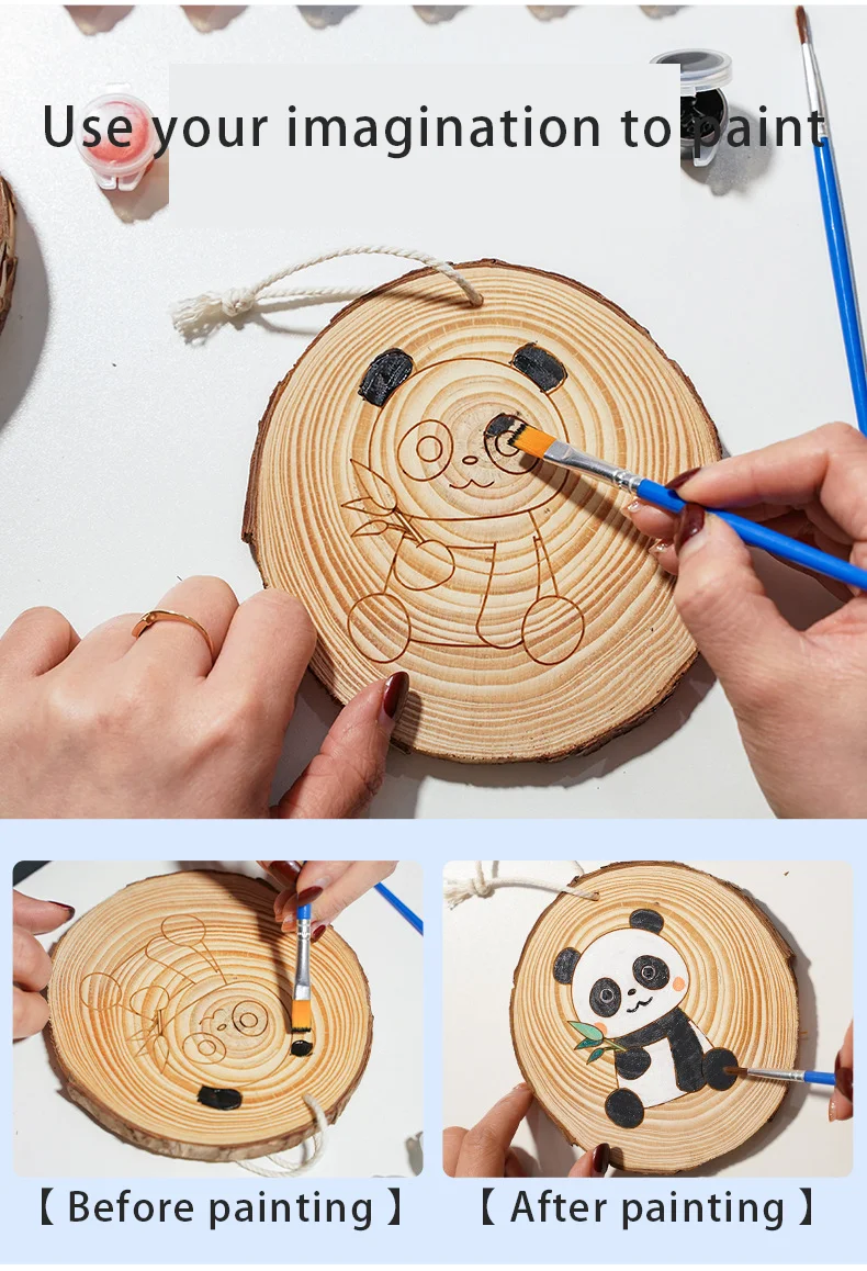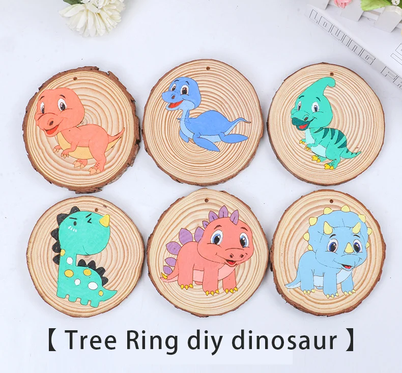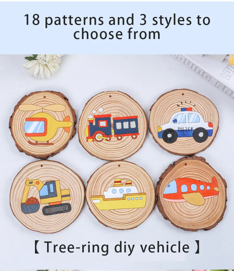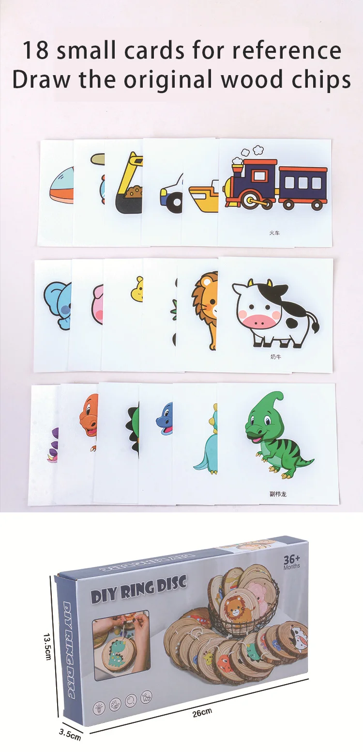 Children Pine Disc Drawing Set Wood Chip Painting Set Cartoon Pattern Kids Painting Toys