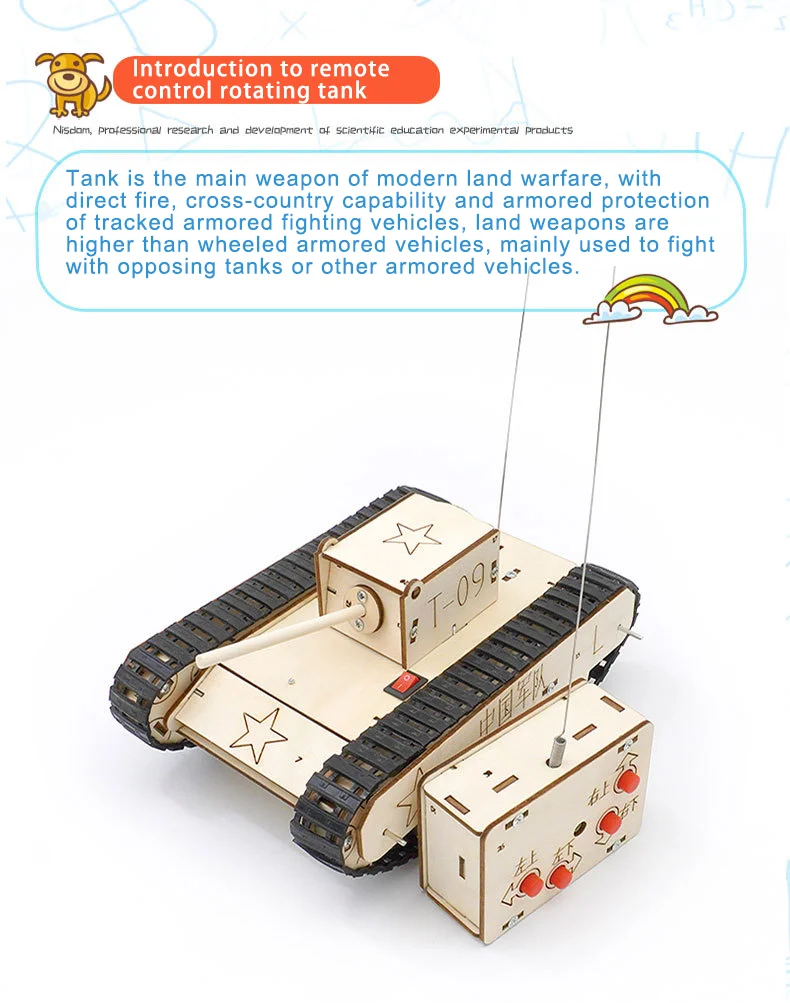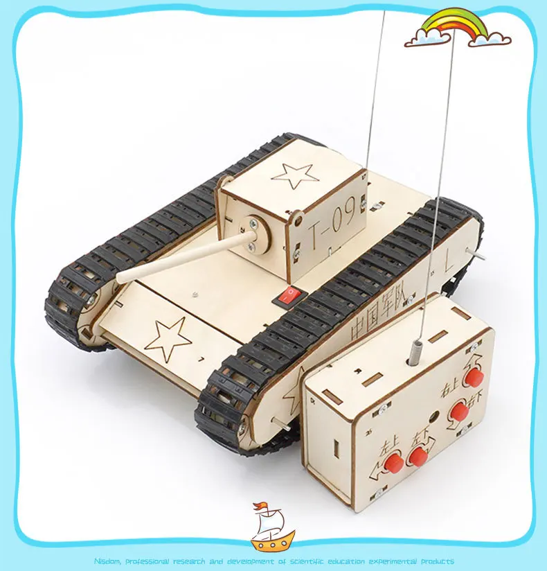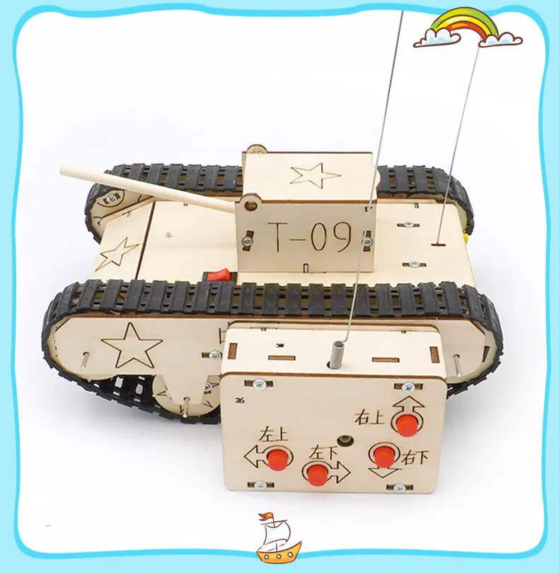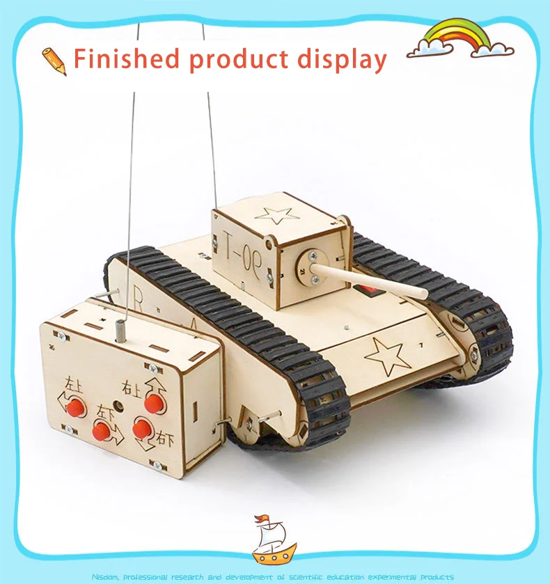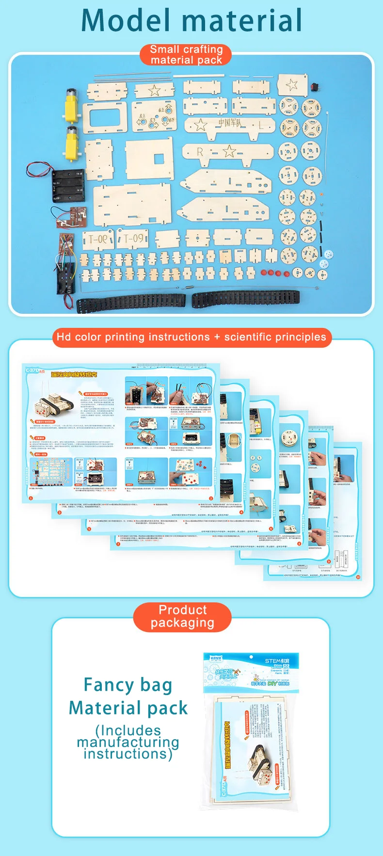 Children’S DIY Handmade Puzzle Teaching Aids Pupils Science Physics Assembly Model STEM Wooden Remote Control Rc Tank Toy
