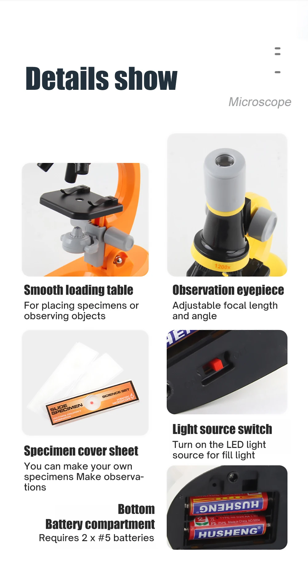 Children’s LED Microscope Kit 100X 400X 1200X Biological Microscope Toys Home School Science Educational Toy Kids Gift