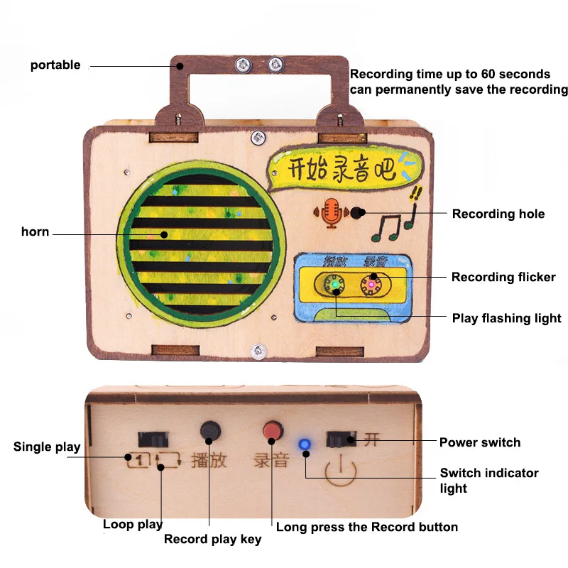 Custom Kids Wooden 3D Puzzle Sound Recorder Jigsaw Toy Recording Machine DIY Game Set Unisex Customized