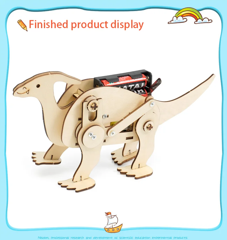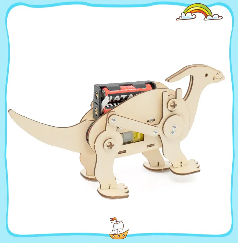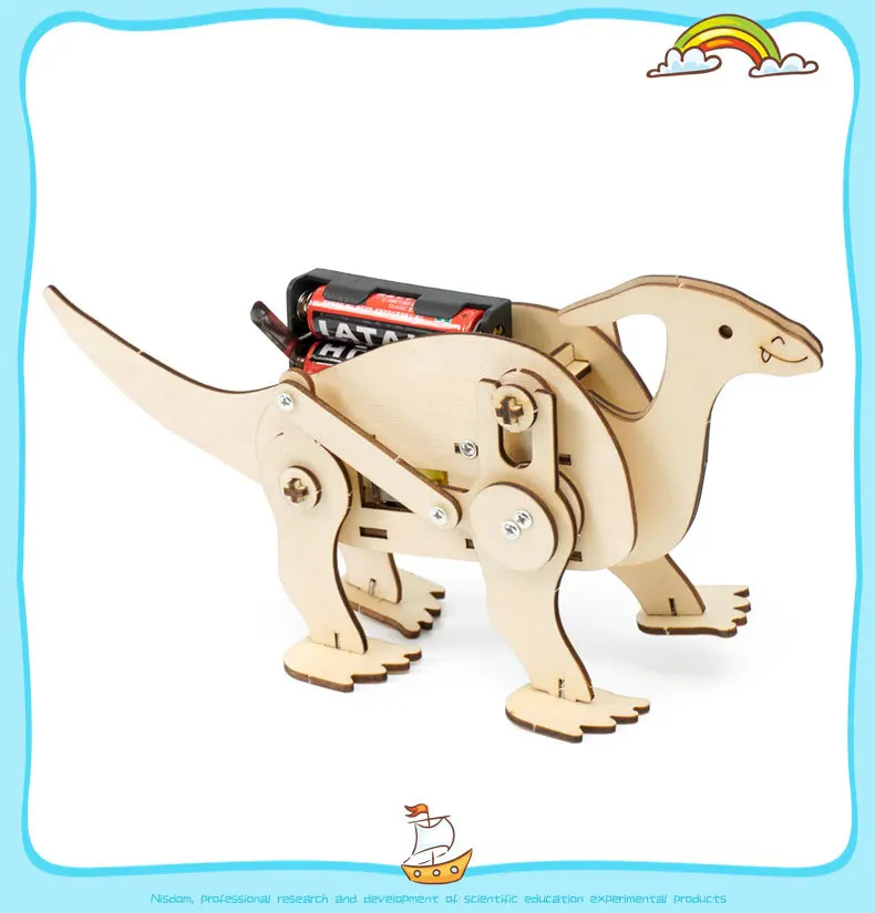 Handmade Mechanical Parasaurolophus Model DIY Assembly Walking Dinosaur 3D Wooden Electric Puzzle Dinosaur STEM Toy