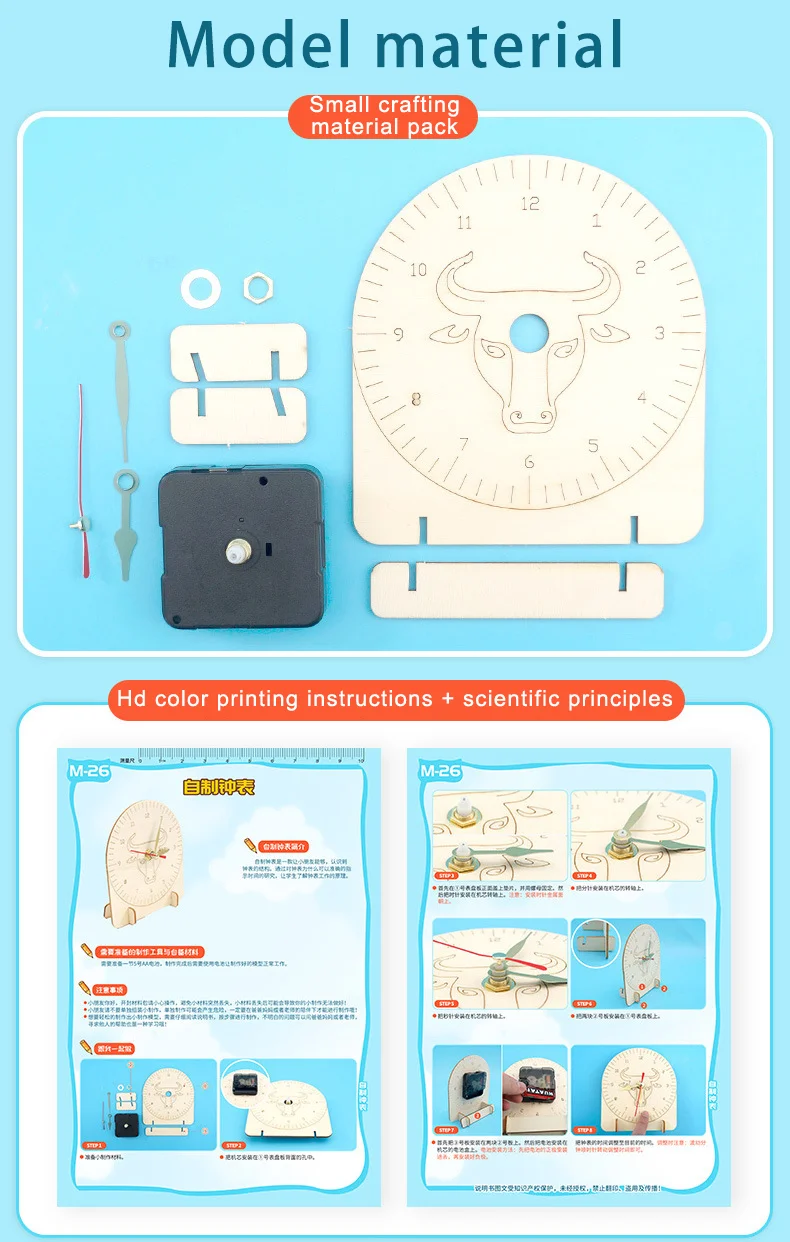 DIY Handmade 3D Wooden Puzzle Clock Science And Technology STEM Experimental Kit For Children And Student