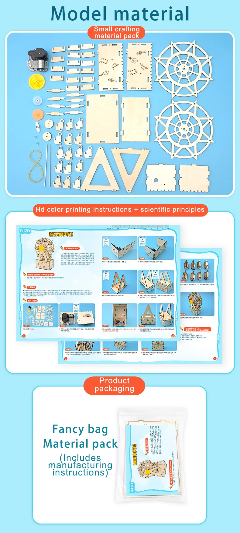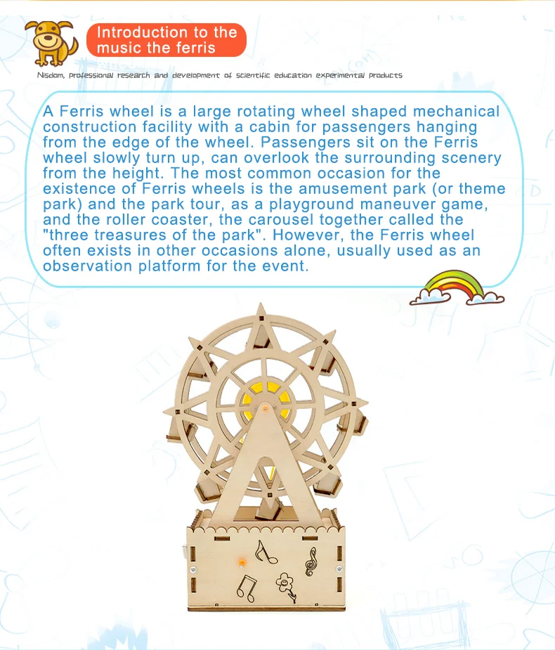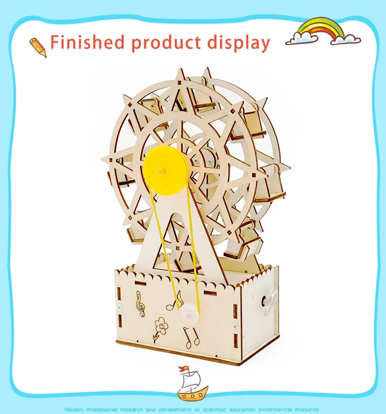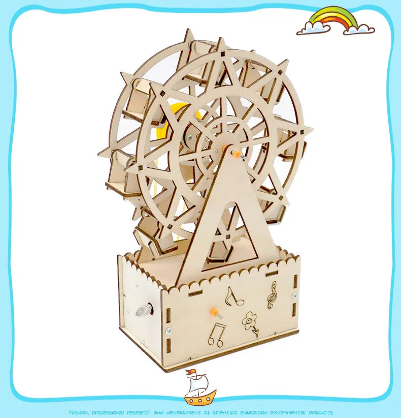 DIY Handmade Science Experiment Rotatable 3D Wooden Puzzle Music Box Ferris Wheel Assembly Model Technology Small Production