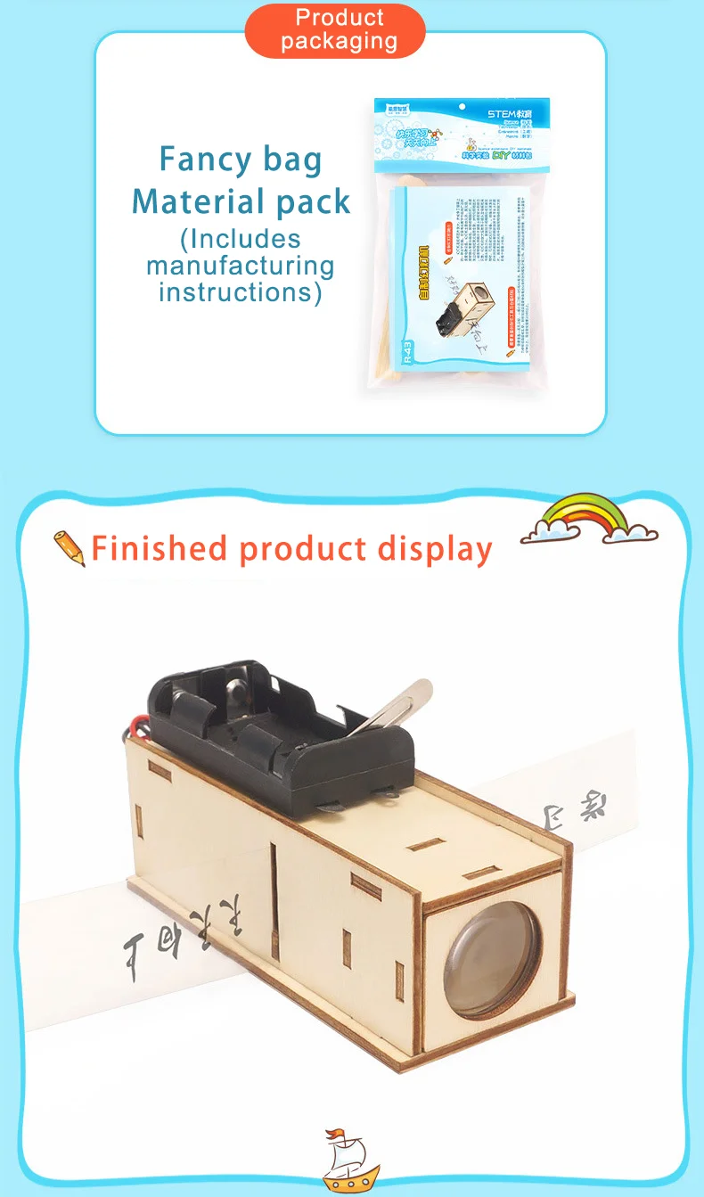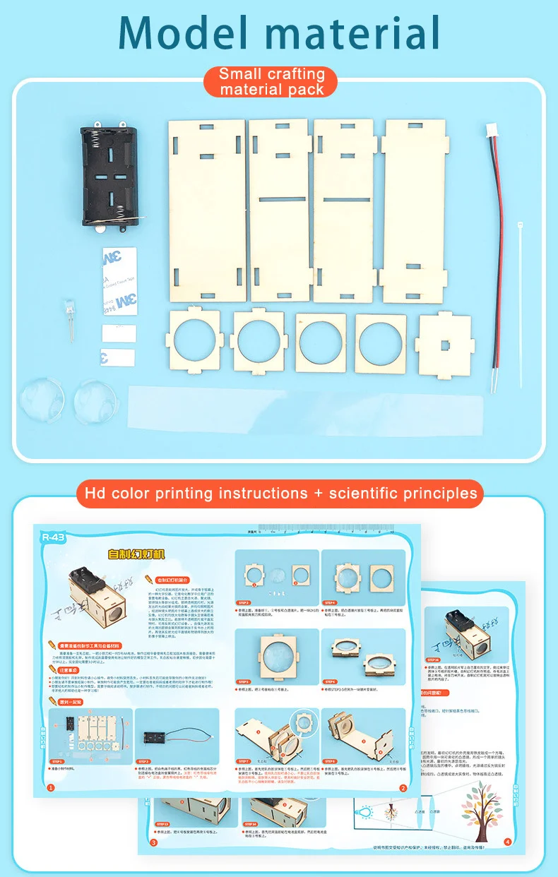DIY Science STEM Project Wood Slide Projector Model Lamp Handmade Materials School Scientific Experiment Toy