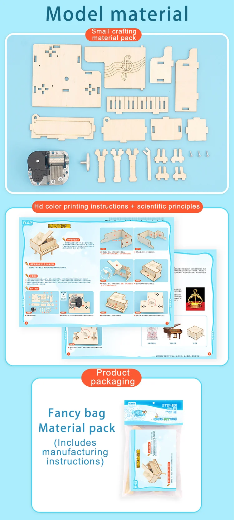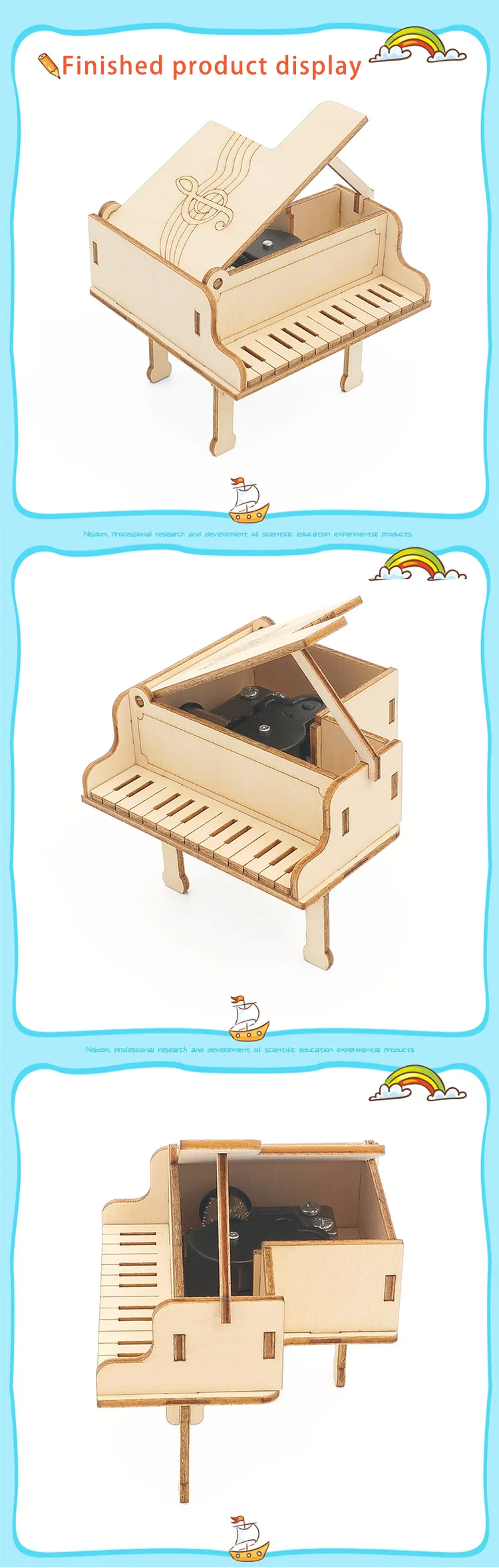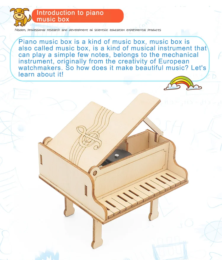 DIY Technology Piano Music Box Wooden Puzzle Model Assembly Science Toy Hand Made Science Experiment Tool Kits For School