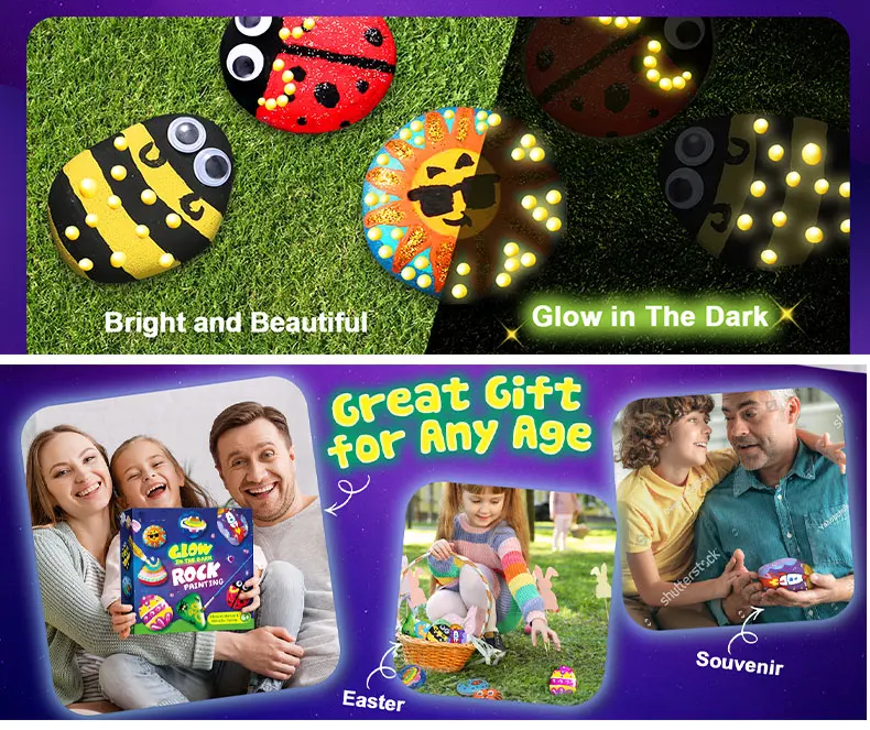 | Desc. | Hot Sale Educational Art and Craft Kit Creative Stones Drawing Toys Glow In The Dark Rock Painting Kit for Children. |