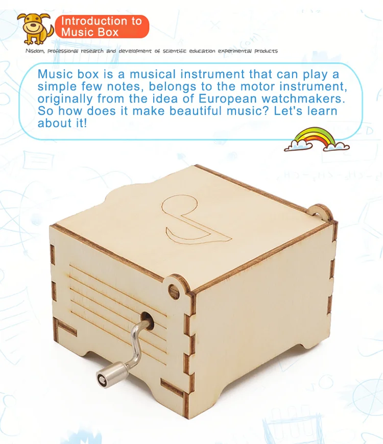 Kid Invention DIY Assembly Wooden Hand Crank Music Box Science Experiment STEM-UMI-2019