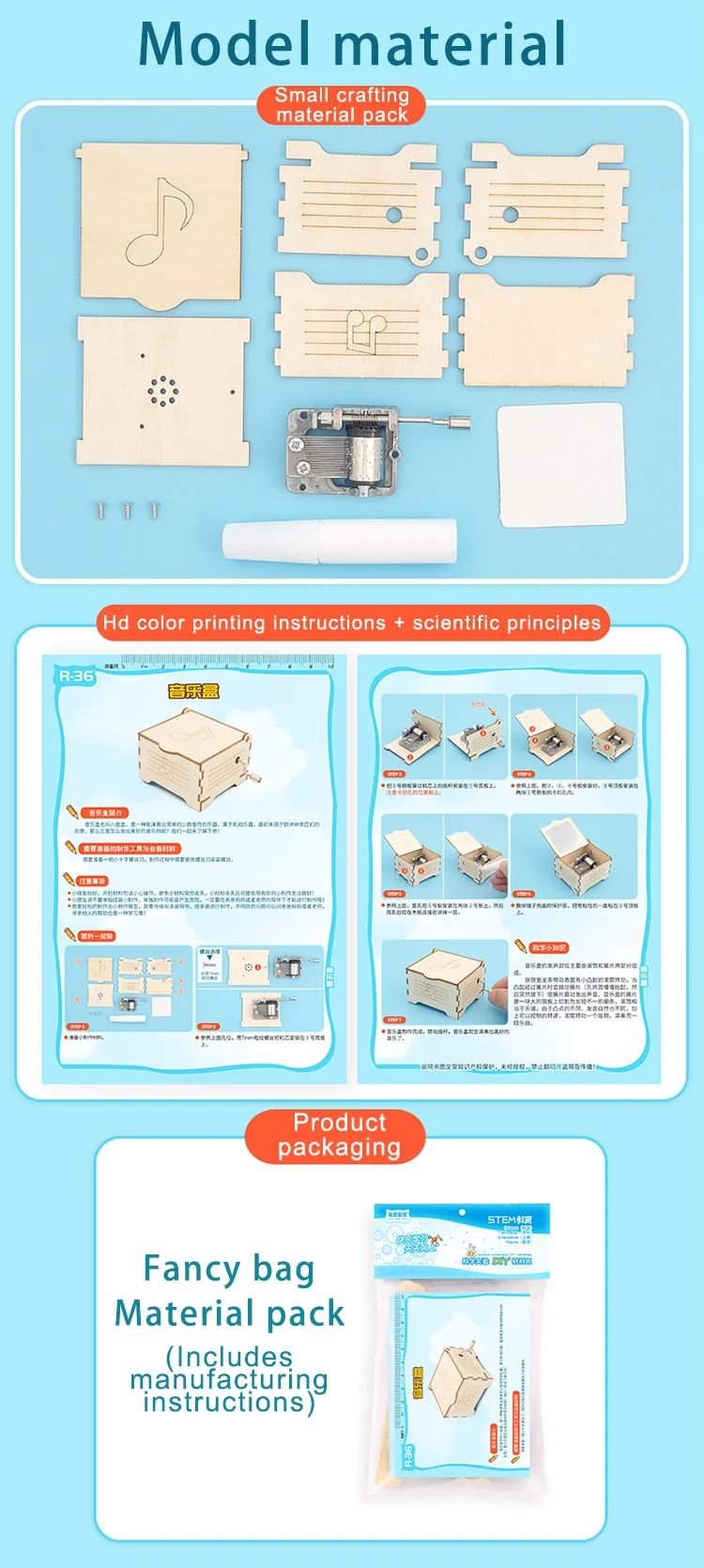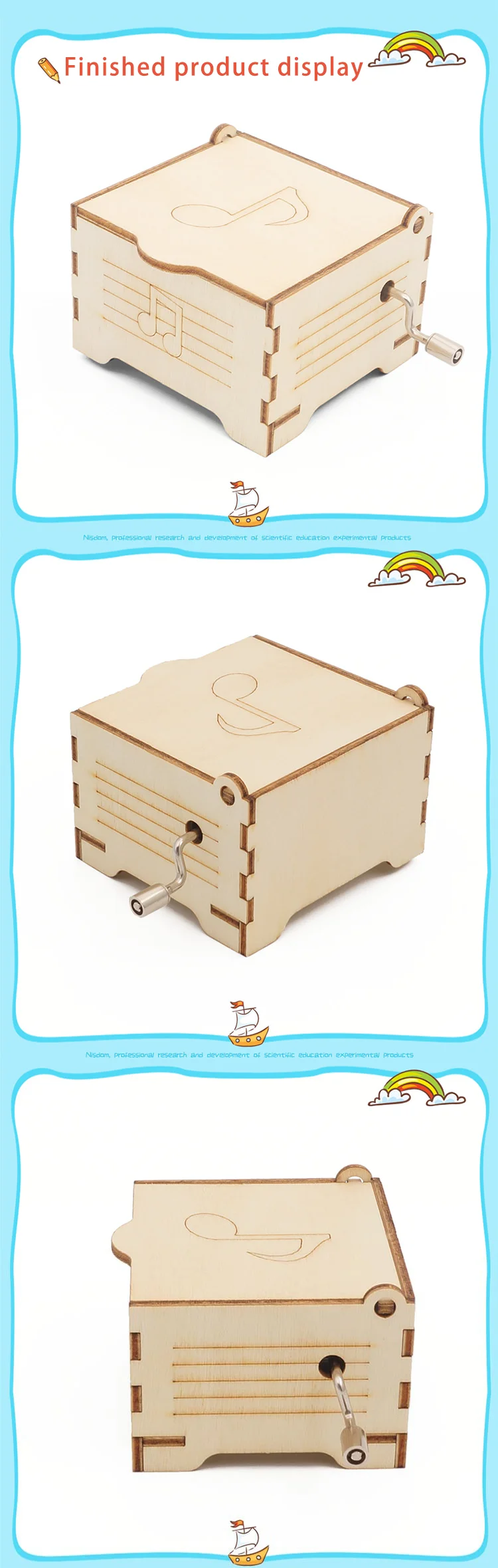 Kid Invention DIY Assembly Wooden Hand Crank Music Box Science Experiment STEM School Projects For Kids