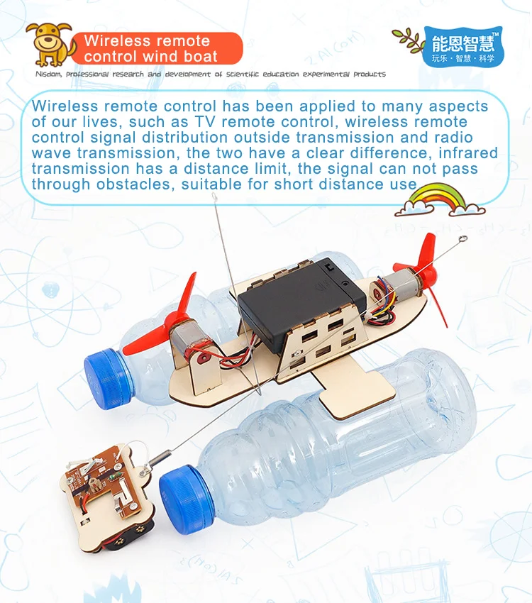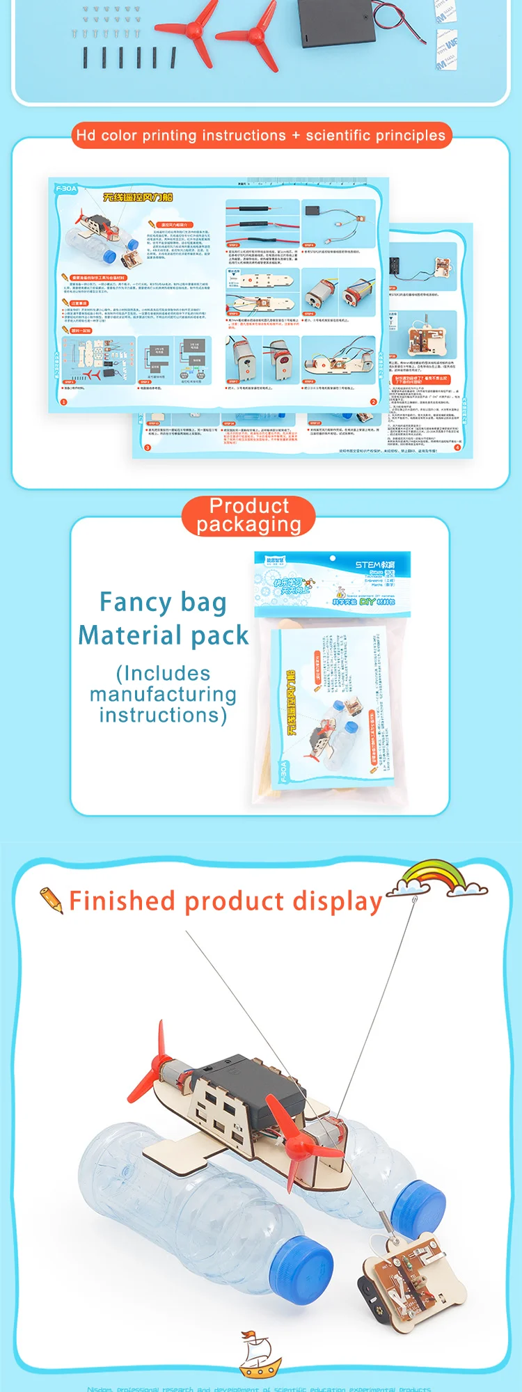 Kids School Study Materials STEM Wooden Education Physics Airplane Aircraft Wooden Remote Control Boat DIY Science Toy