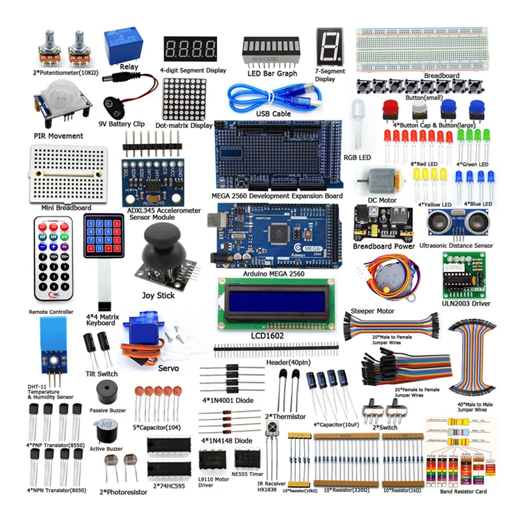 MEGA 2560 Project The Most Complete Starter Kit for Mega2560 Nano with LCD1602 IIC / Ultrasonic Sensor / Tutorial