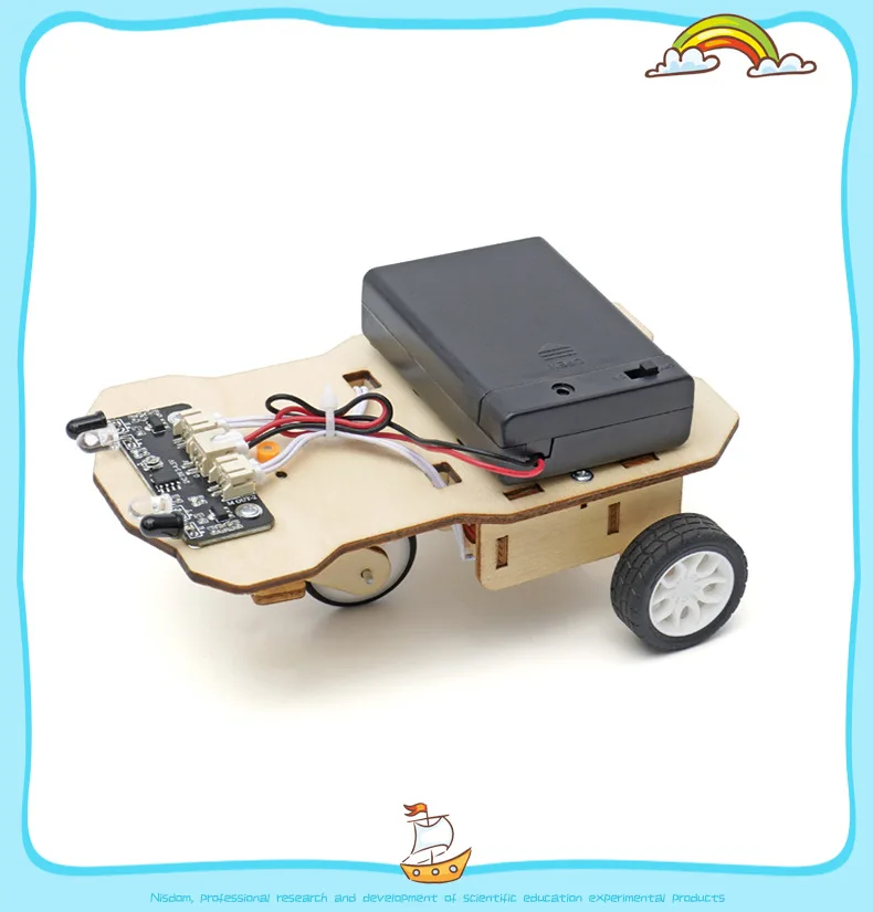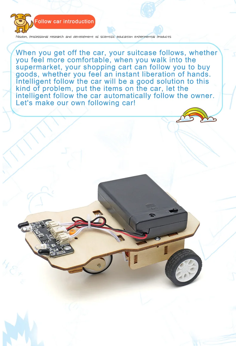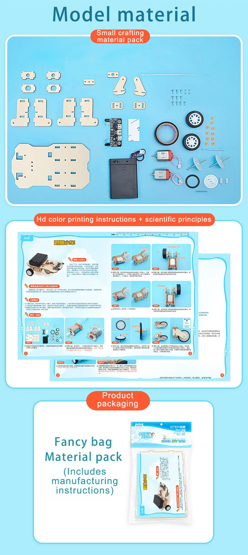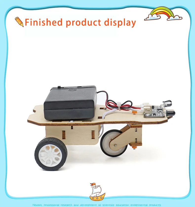 School Physics Experiment STEM Science Learning Model Wooden Kids Toy DIY Assembling Follow The Trolley Kit