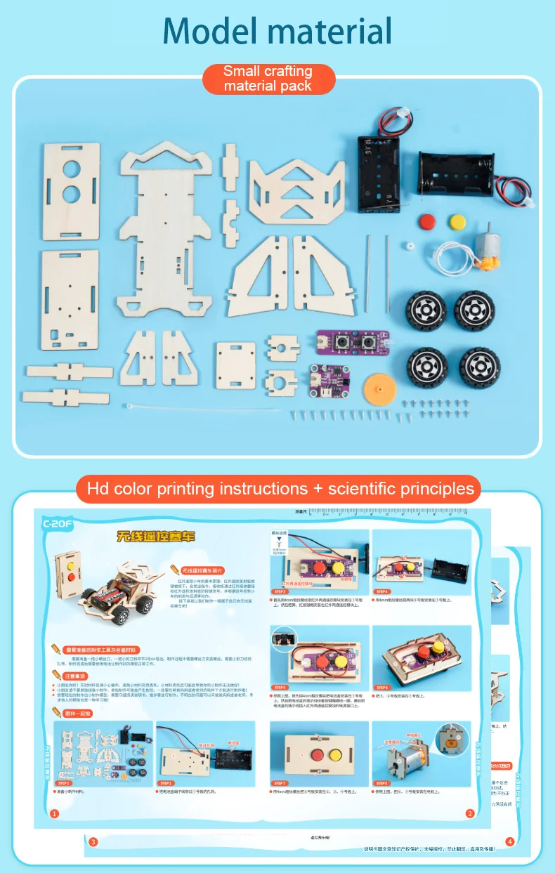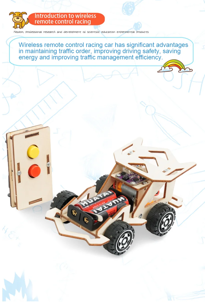School Student STEM Science Educational Kits Wireless Remote Control Racing Car Wooden Car Vehicle Model Assembly RC Toys