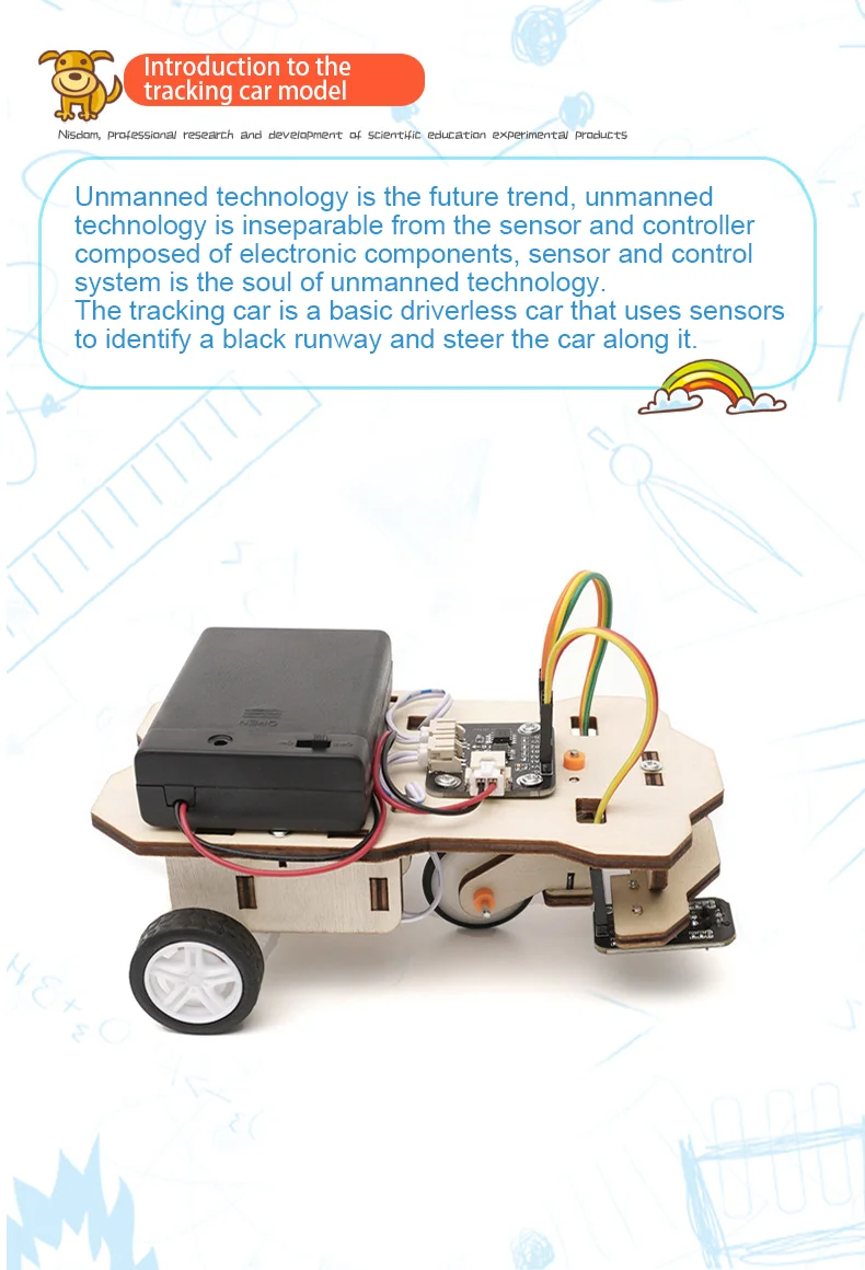 Science Technology STEM Education Toy Electric Tracking Smart Car DIY Assembled Model Physics School Experiment Kit