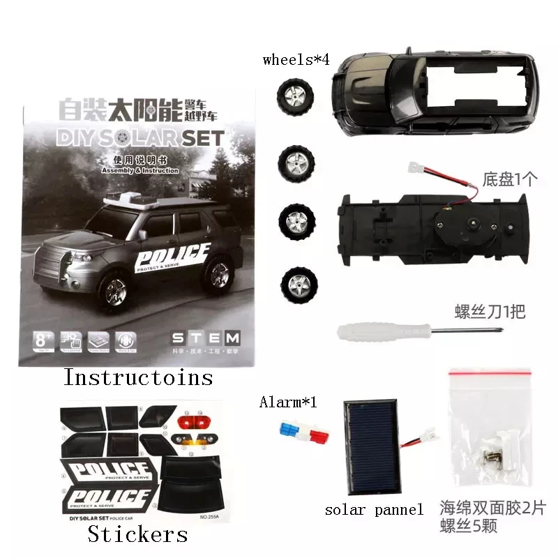 wholesale Diy Novelty mini Plastic Solar-powered off road vehicle Police Car Toys set