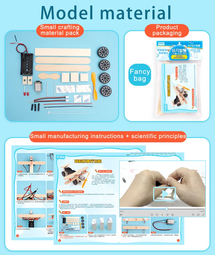 Wooden Plane Model 3D Model Aircraft Kits Electric Glider Technology Physical Science Experiment Kit DIY STEM Toys